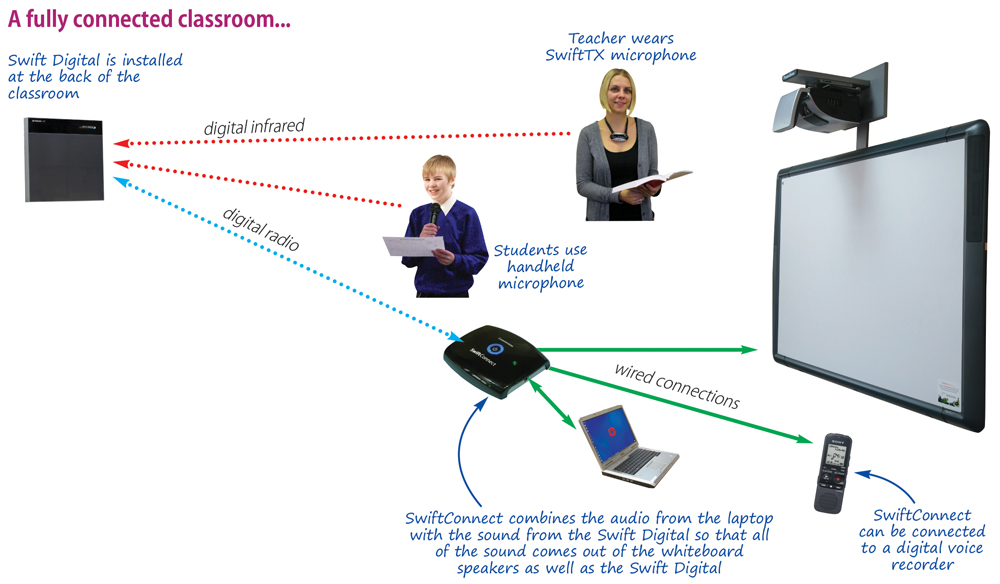 - the voice of the teacher clearly through the Swift Digital and and whiteboard speakers